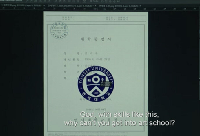 5. Dalam sertifikat palsu Ki-Woo, tertulis ia mahasiswa Universitas Yonsei. Bukan suatu kebetulan, karena ini adalah tempat Joon-ho Bong berkuliah di Jurusan Sosiologi.