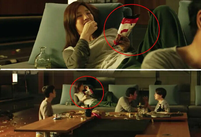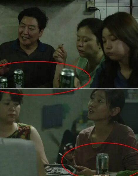 6. Pertama kali keluarga Kim muncul, mereka terlihat minum FiLite, bir murah di Korea Selatan. Setelah Ki-woo dan Ki-jung bekerja untuk keluarga Park, mereka bisa beli bir kelas premium, Sapporo.