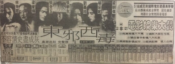 千呼萬喚,《東邪西毒》在《東成西就》上映後一年半終於在台登場
