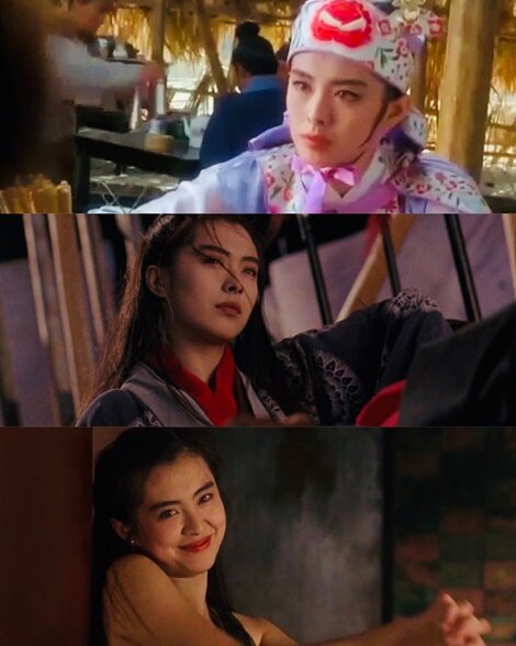 王祖賢造型多變,在當年賀歲檔就有《東成西就》《東方不敗之風雲再起》與《城市獵人》三部主演電影上映